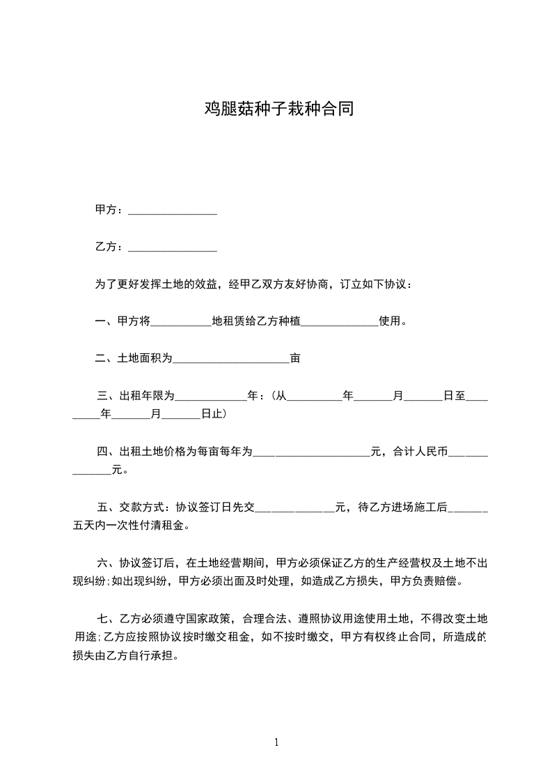 八、在土地租赁期间,如遇国家征用或甲方整体土地开发利用,乙方必须同意,土地赔偿款归甲方,青苗费归乙方,乙方所交租金扣除使用年限后剩余部分退还乙方。
