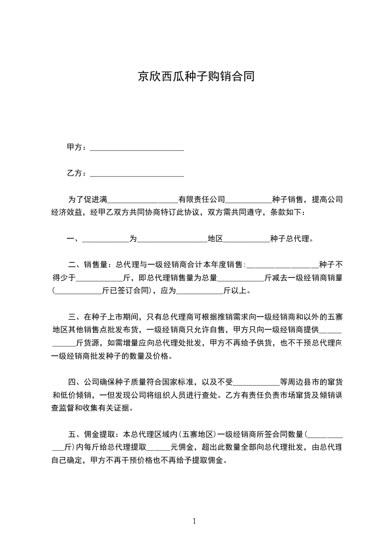为了促进满__________________有限责任公司____________种子销售,提高公司经济效益,经甲乙双方共同协商特订此协议,双方需共同遵守,条款如下: