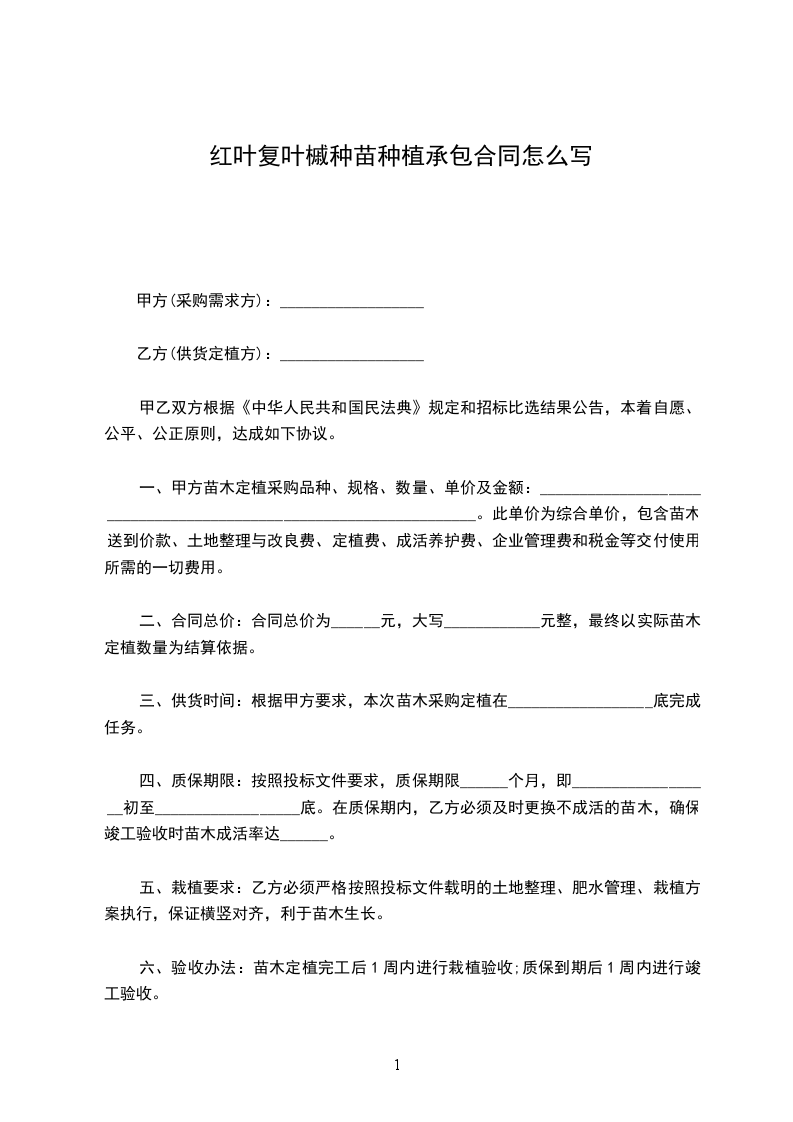甲方委托乙方对_______苗木基地的苗木进行种植。经双方商定,签订如下合同。