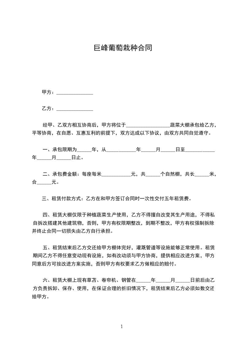九、乙方不得将所承包的大棚转包给他人经营,一经发现甲方将解除乙方承包权,合同终止,大棚回收,因此而造成的经济损失由乙方自行承担,承包费不予退回。