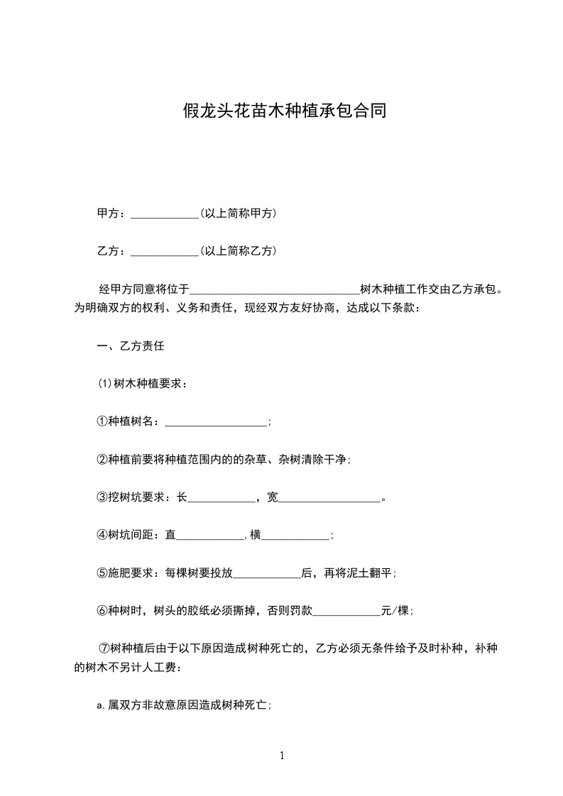经甲方同意将位于___________________________________种植工作交由乙方承包。为明确双方的权利、义务和责任,现经双方友好协商,达成以下条款: