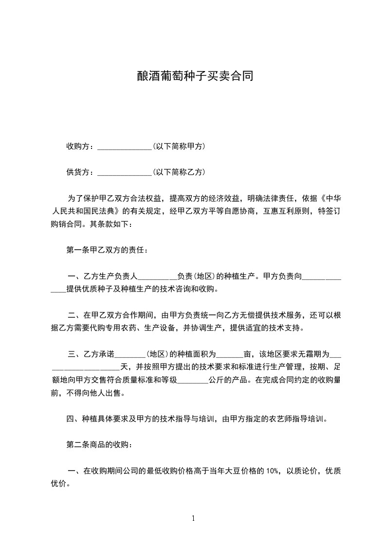 一、乙方生产负责人__________负责(地区)的种植生产。甲方负责向______________提供优质种子及种植生产的技术咨询和收购。