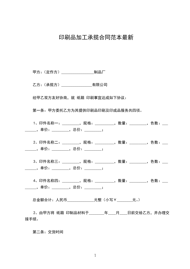 第一条:甲方委托乙方为其提供印刷品印刷及印成品服务共四项。