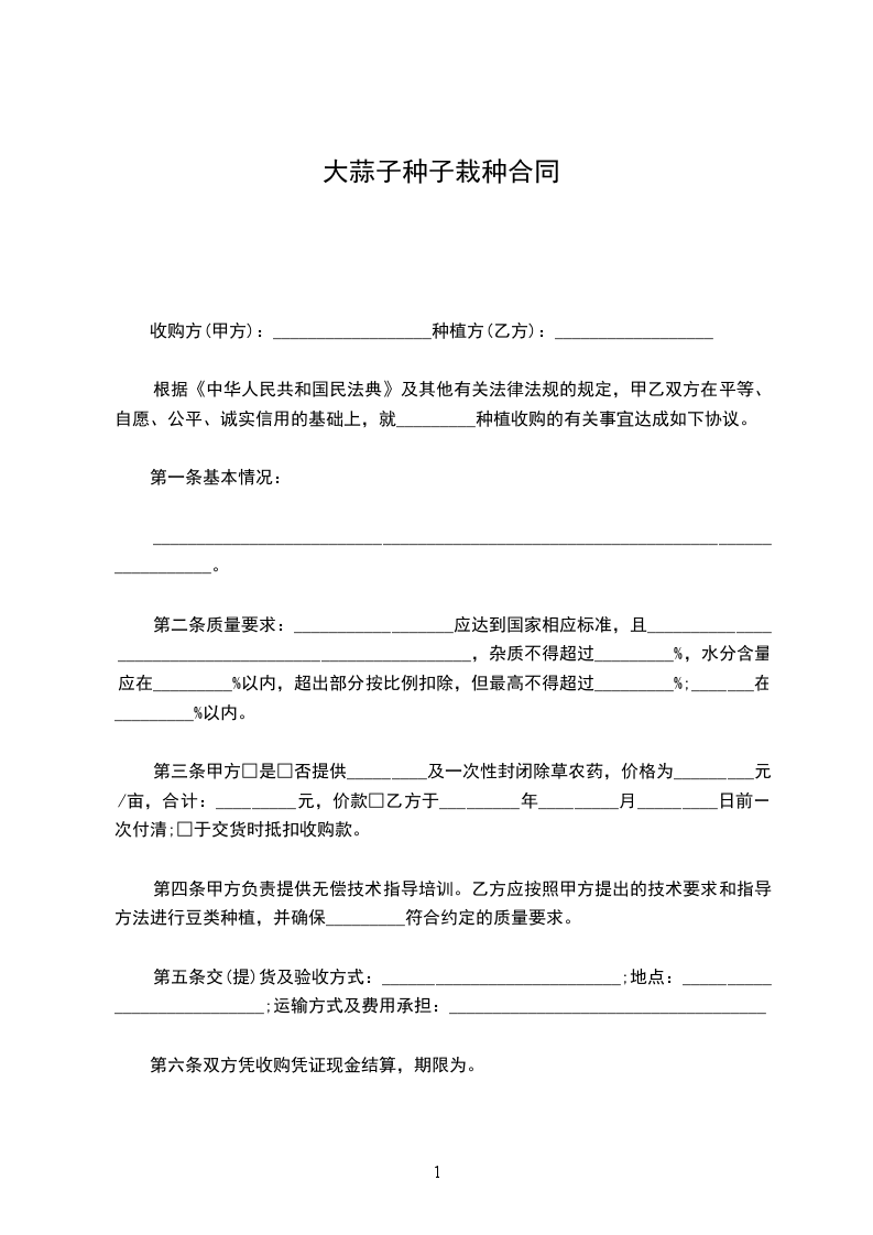 根据《中华人民共和国民法典》及其他有关法律法规的规定,甲乙双方在平等、自愿、公平、诚实信用的基础上,就_________种植收购的有关事宜达成如下协议。