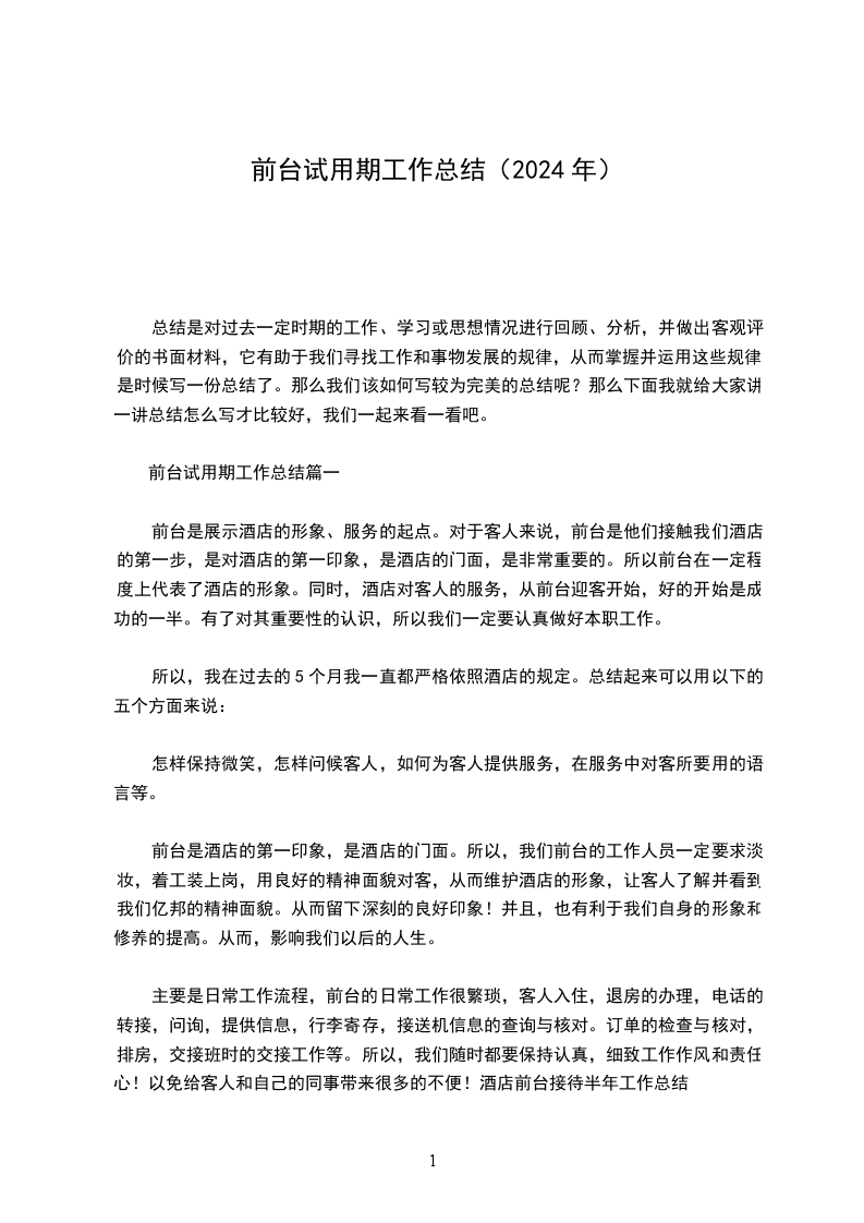 以上这些正是我在工作中缺少的。通过思考,我认为,不管哪一个岗位,不管从事哪一项工作,都是公司整体组织结构中的一部分,都是为了公司的总体目标而努力。对前台工作,应该是公司的形象、服务的起点。因为对客户来说,前台是他们接触公司的第一步,是对公司的第一印象,而第一印象非常重要,所以前台在一定程度上代表了公司的形象。同时,公司对客户的服务,从前台迎客开始,好的开始是成功的一半。有了对其重要性的认识,促使我进一步思考如何做好本职工作。所以在今后的日子里我一定会更加努力的工作!3