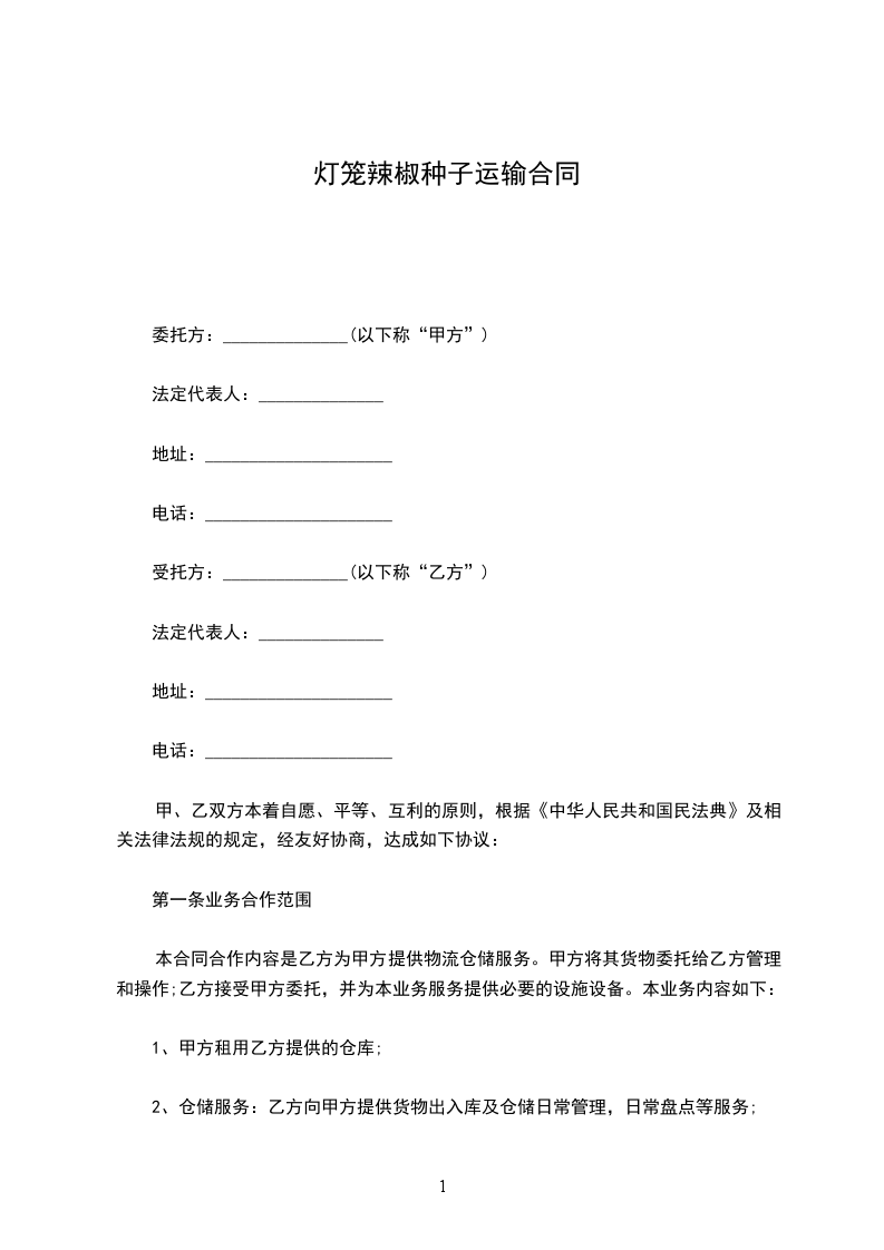 灯笼辣椒种苗栽种合同
