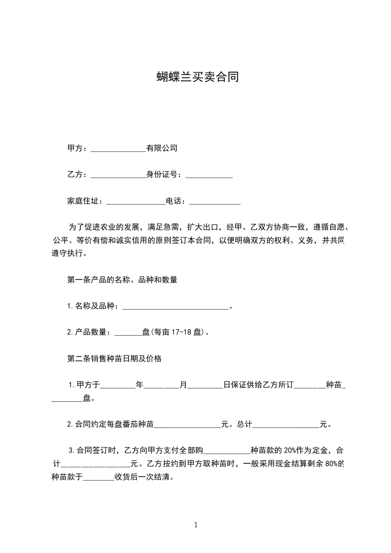蝴蝶花买卖合同