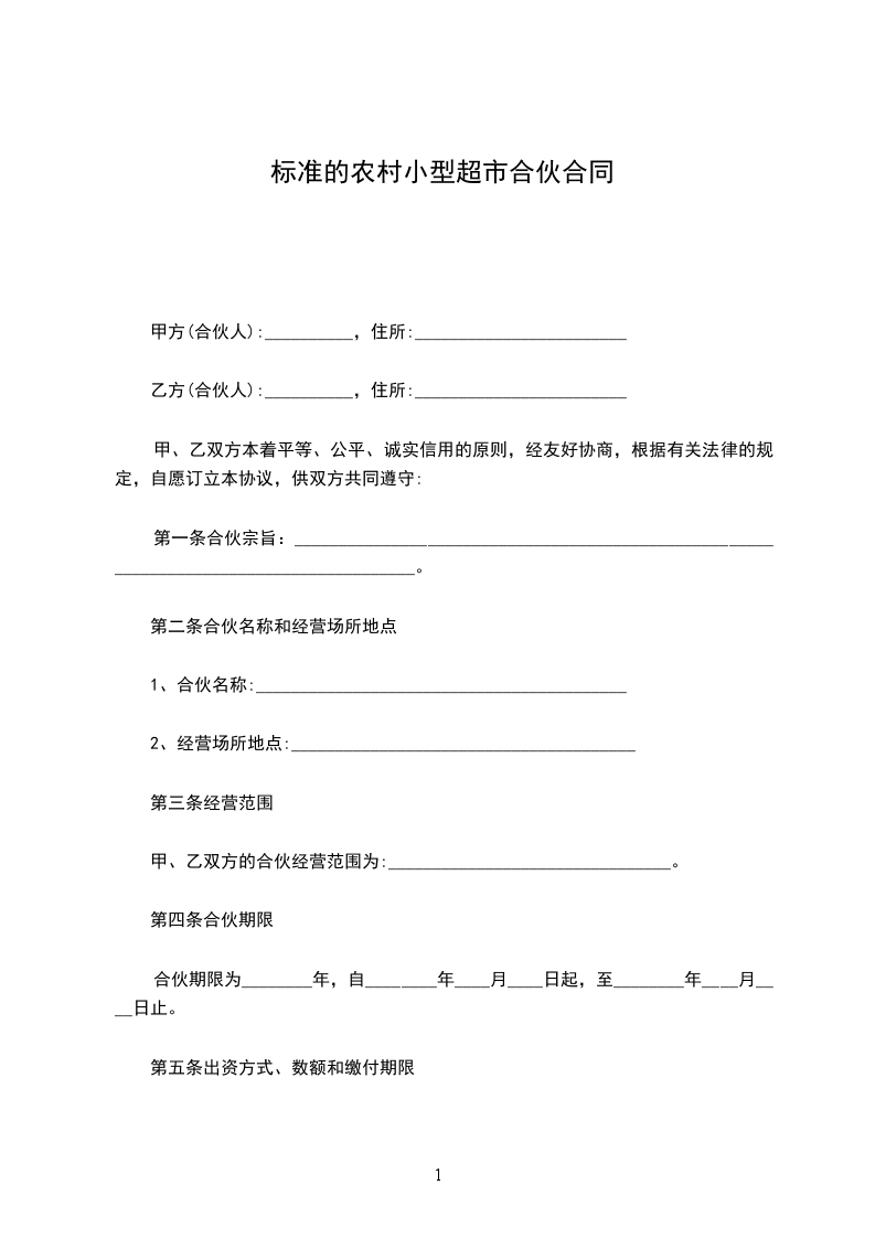 第一条:合伙宗旨:________________________________________。
