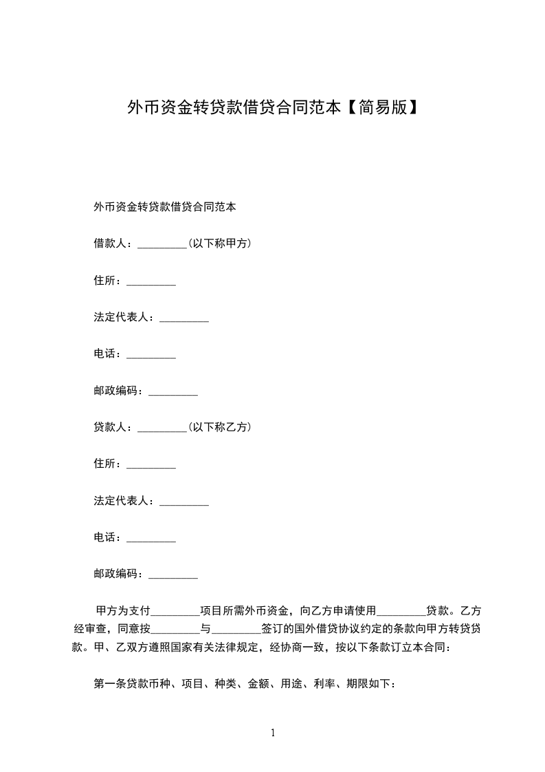 甲方为支付_________项目所需外币资金,向乙方申请使用_________贷款。乙方经审查,同意按_________与_________签订的国外借贷协议约定的条款向甲方转贷贷款。甲、乙双方遵照国家有关法律规定,经协商一致,按以下条款订立本合同: