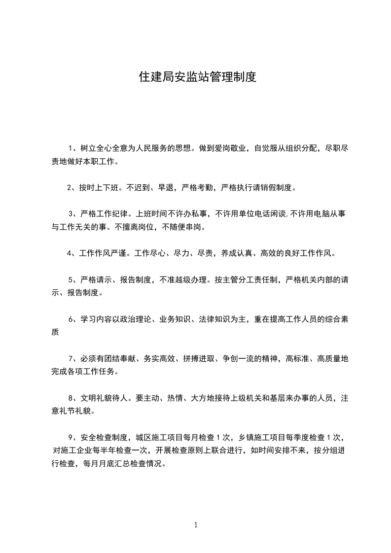 9、安全检查制度,城区施工项目每月检查1次,乡镇施工项目每季度检查1次,对施工企业每半年检查一次,开展检查原则上联合进行,如时间安排不来,按分组进行检查,每月月底汇总检查情况。