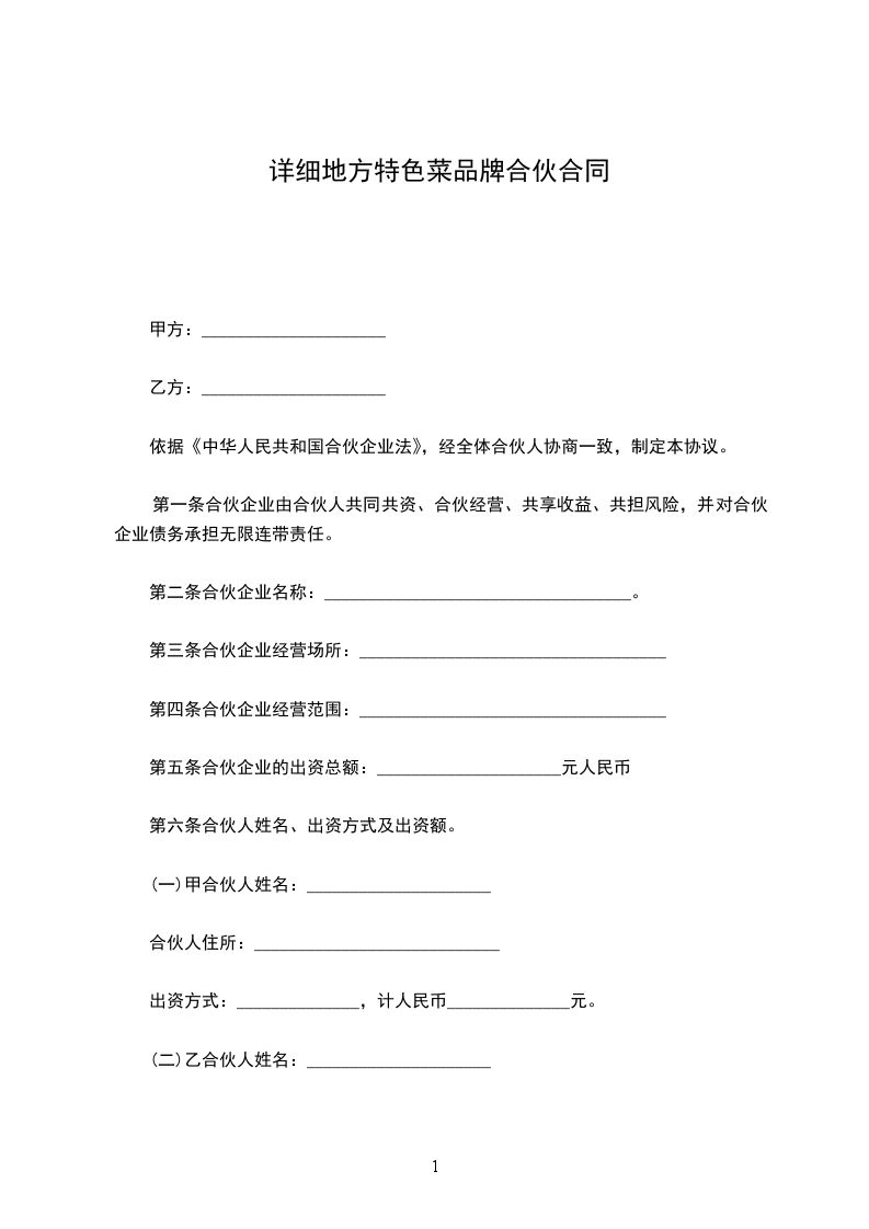 (一)甲方出资人民币_________元,大写_________,占总投资额50%。