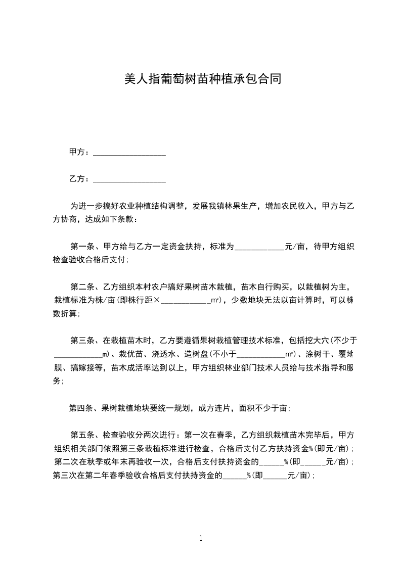 第一条、甲方给与乙方一定资金扶持,标准为____________元/亩,待甲方组织检查验收合格后支付;