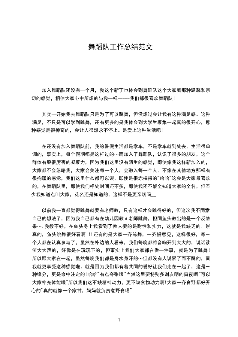 加入舞蹈队还没有一个月,我这个新丁也体会到舞蹈队这个大家庭那种温馨和亲切的感觉,相信大家心中所想的与我一样-----我们都很喜欢舞蹈队!