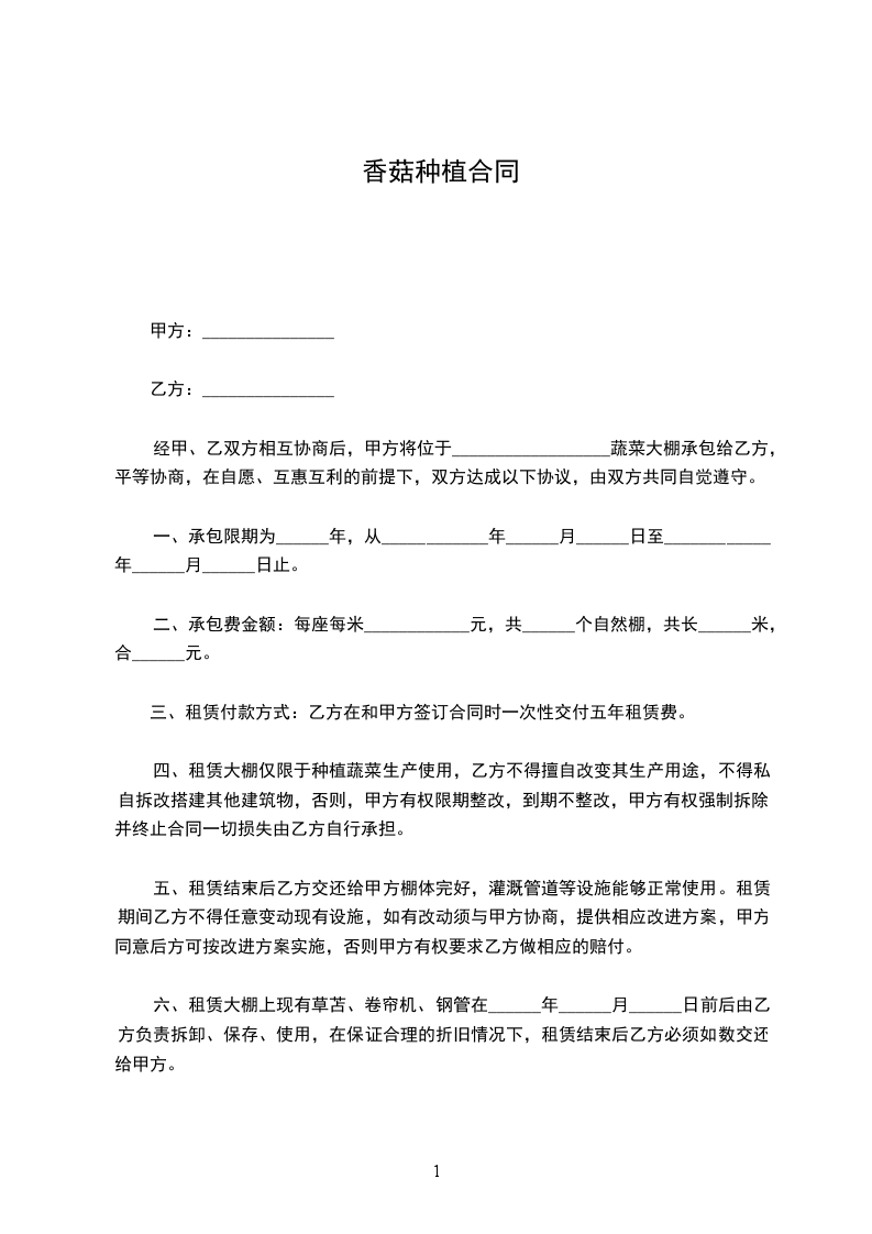 五、租赁结束后乙方交还给甲方棚体完好,灌溉管道等设施能够正常使用。租赁期间乙方不得任意变动现有设施,如有改动须与甲方协商,提供相应改进方案,甲方同意后方可按改进方案实施,否则甲方有权要求乙方做相应的赔付。