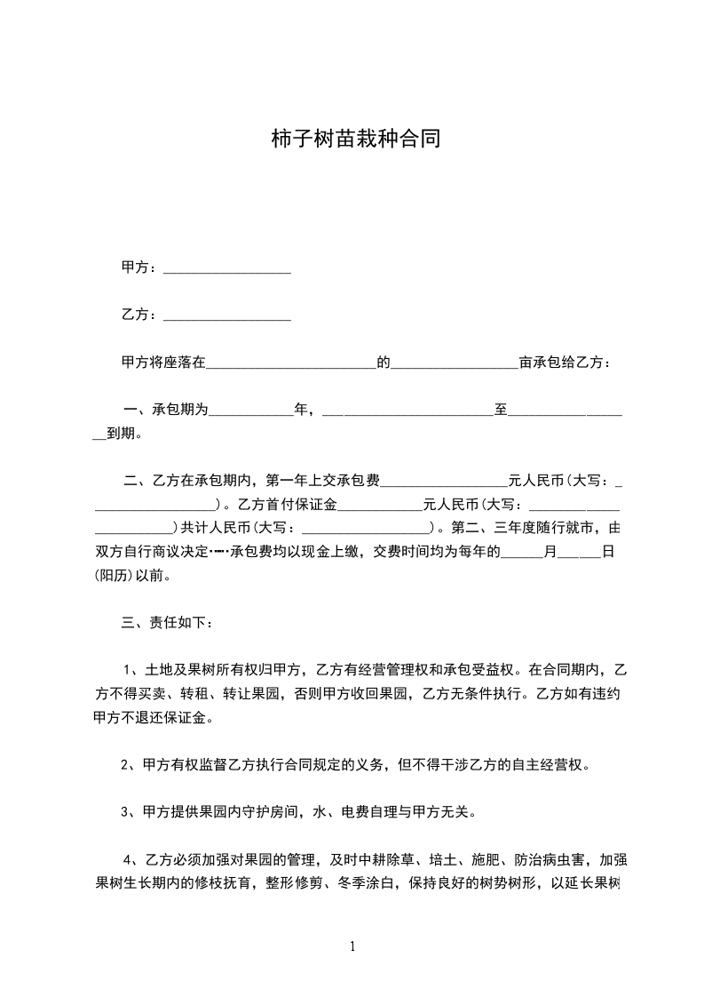 一、甲方愿意将_________________________________________________基地及树木承包给乙方种植,面积(宽______________米,长______________米)共_____________________平方米。