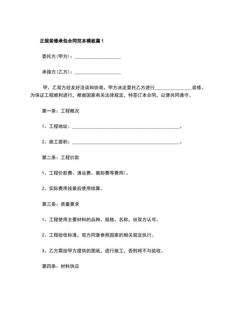正规装修承包合同范本模板篇2