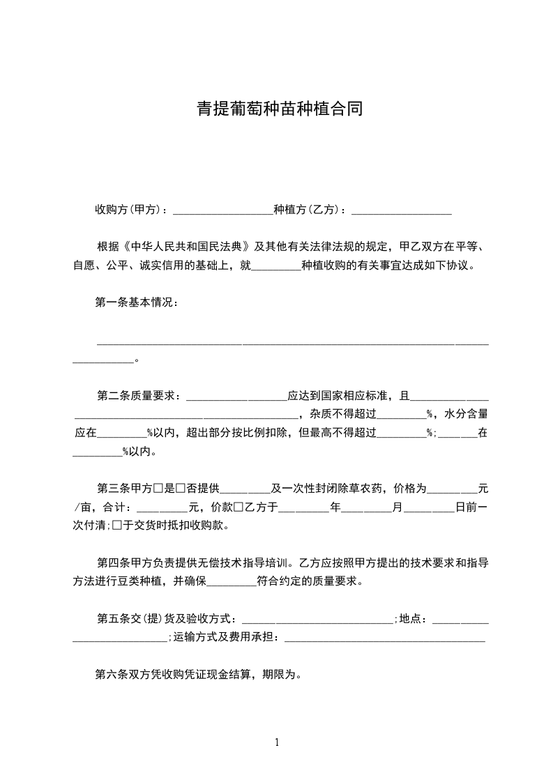 三、乙方责任:乙方在种植前向甲方补助青苗费______________元/亩。