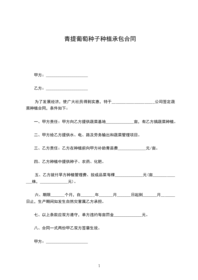 一、甲方责任:甲方向乙方提供蔬菜基地______________亩,有乙方搞蔬菜种植。
