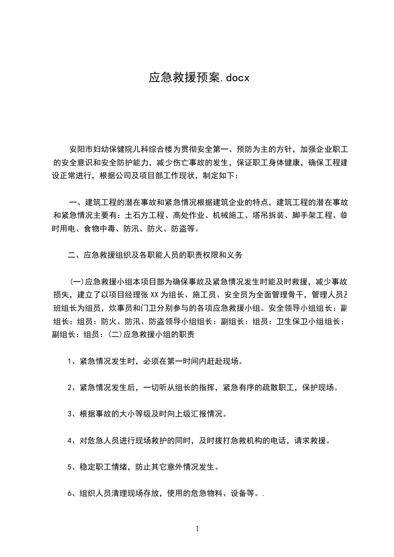3、方案启动__有限公司事故应急预案启动时,依据应急指挥机构的要求,本方案随之启动。