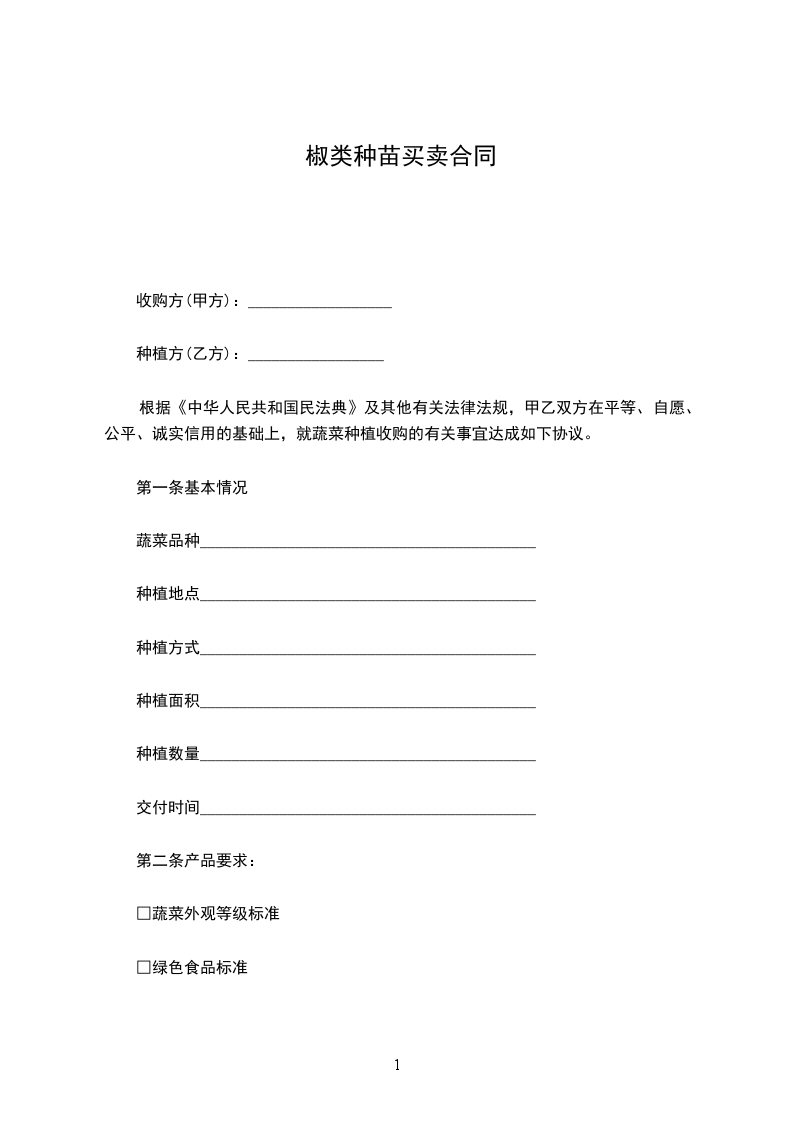 根据《中华人民共和国民法典》及其他有关法律法规,甲乙双方在平等、自愿、公平、诚实信用的基础上,就蔬菜种植收购的有关事宜达成如下协议。