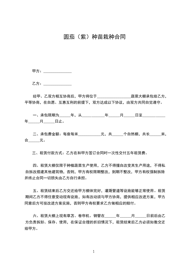 经甲、乙双方相互协商后,甲方将位于__________________蔬菜大棚承包给乙方,平等协商,在自愿、互惠互利的前提下,双方达成以下协议,由双方共同自觉遵守。