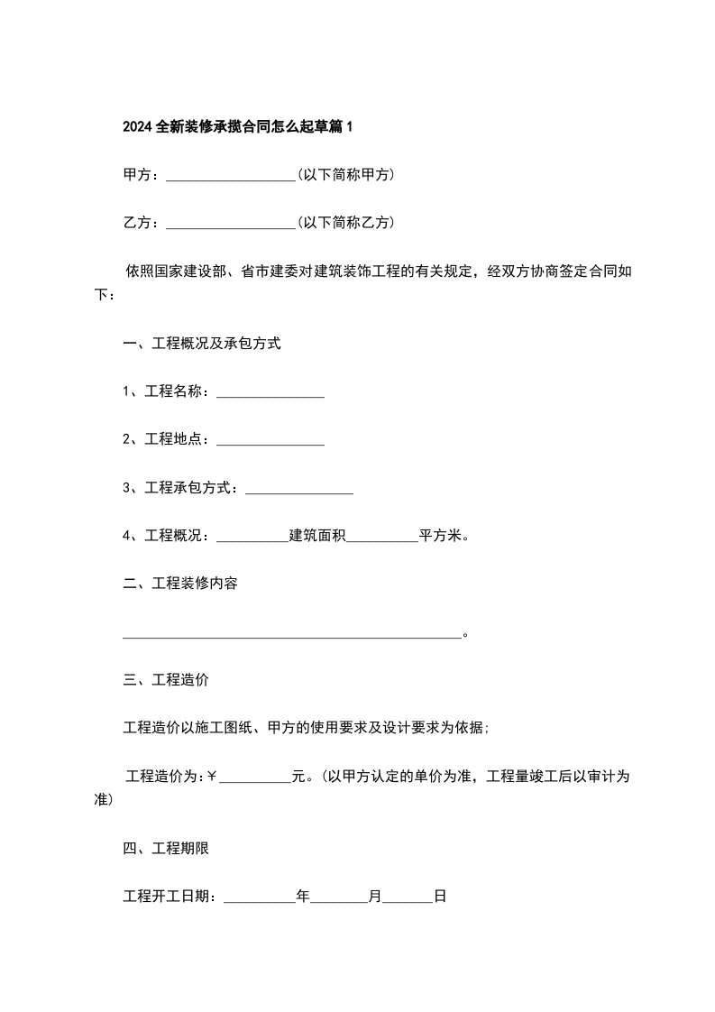 2024全新装修承揽合同怎么起草篇1