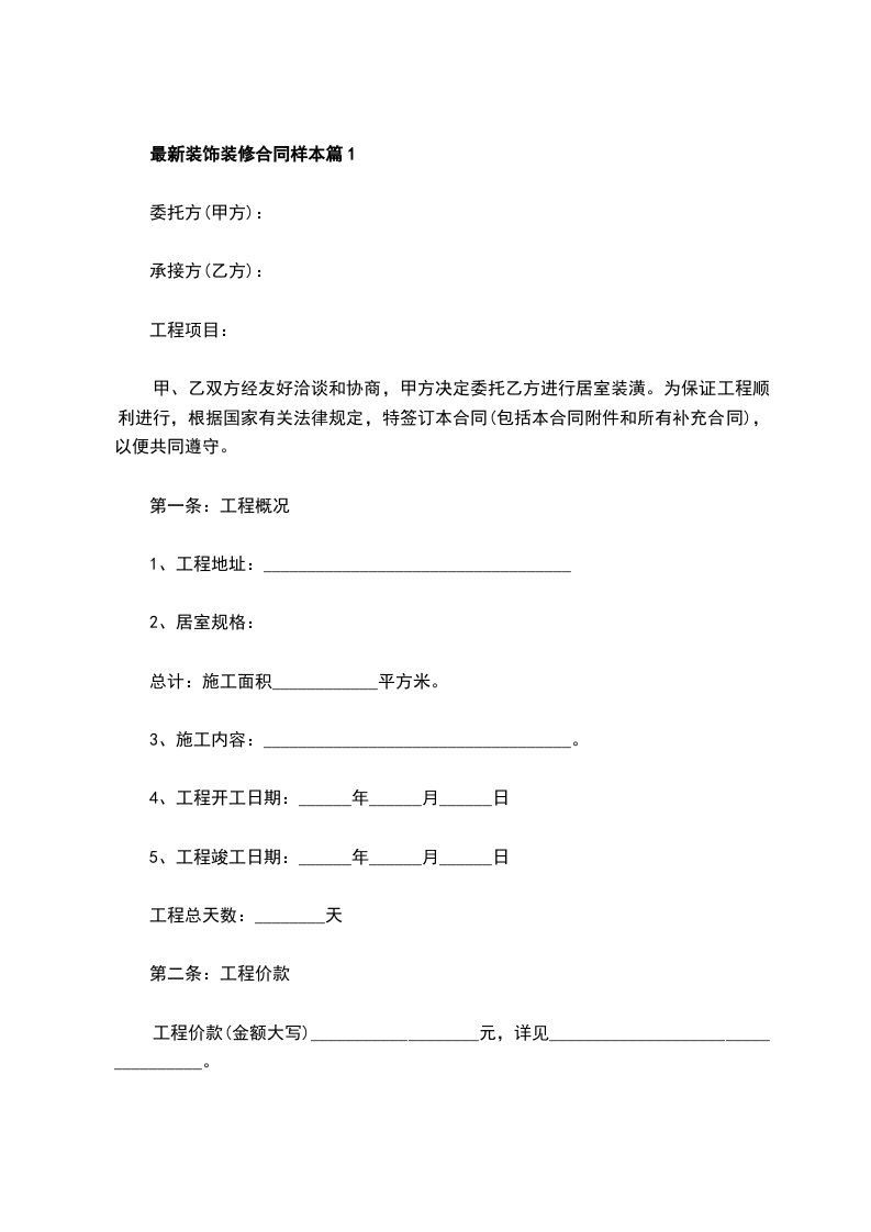 最新装饰装修合同格式篇2