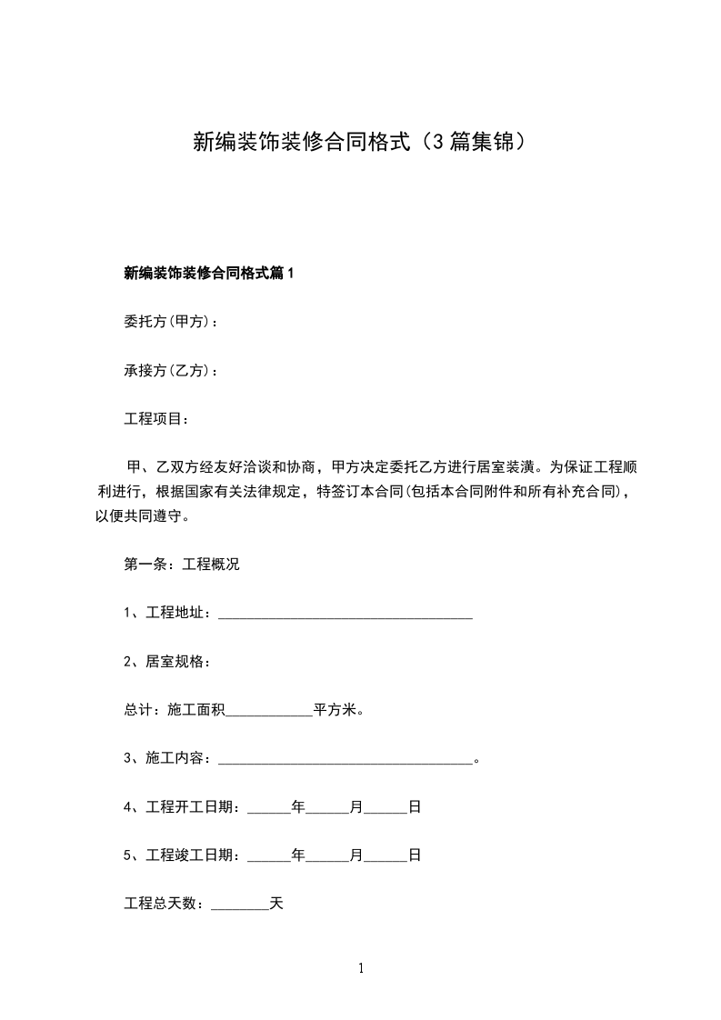 最新装饰装修合同格式篇3