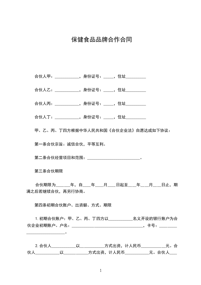 1.初期合伙账户:甲、乙、丙、丁四方以____________名义开设的银行账户为合伙企业初期账户。户名:___________________________________,卡号:____________________________。