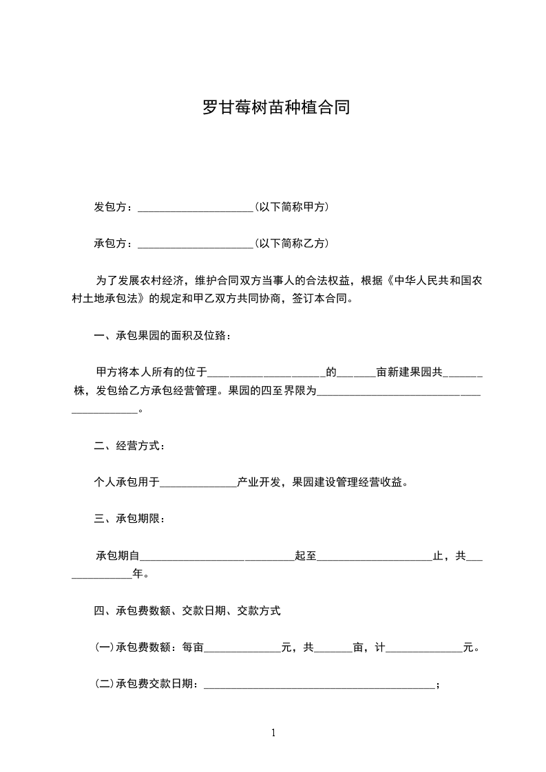 罗甘莓销售合同范本