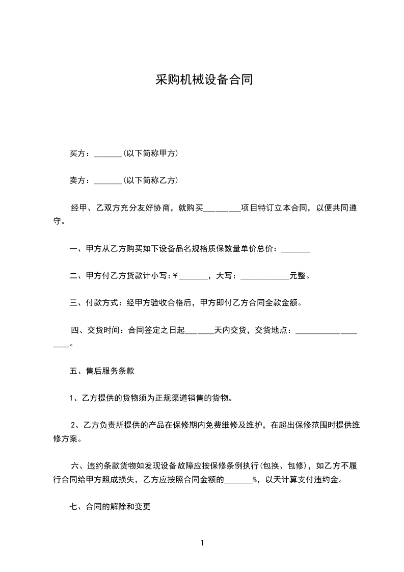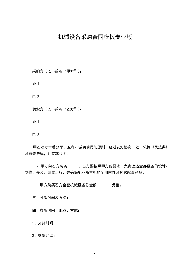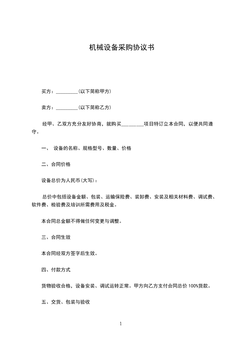 二、甲方购买乙方全套机械设备总金额:______元整。
