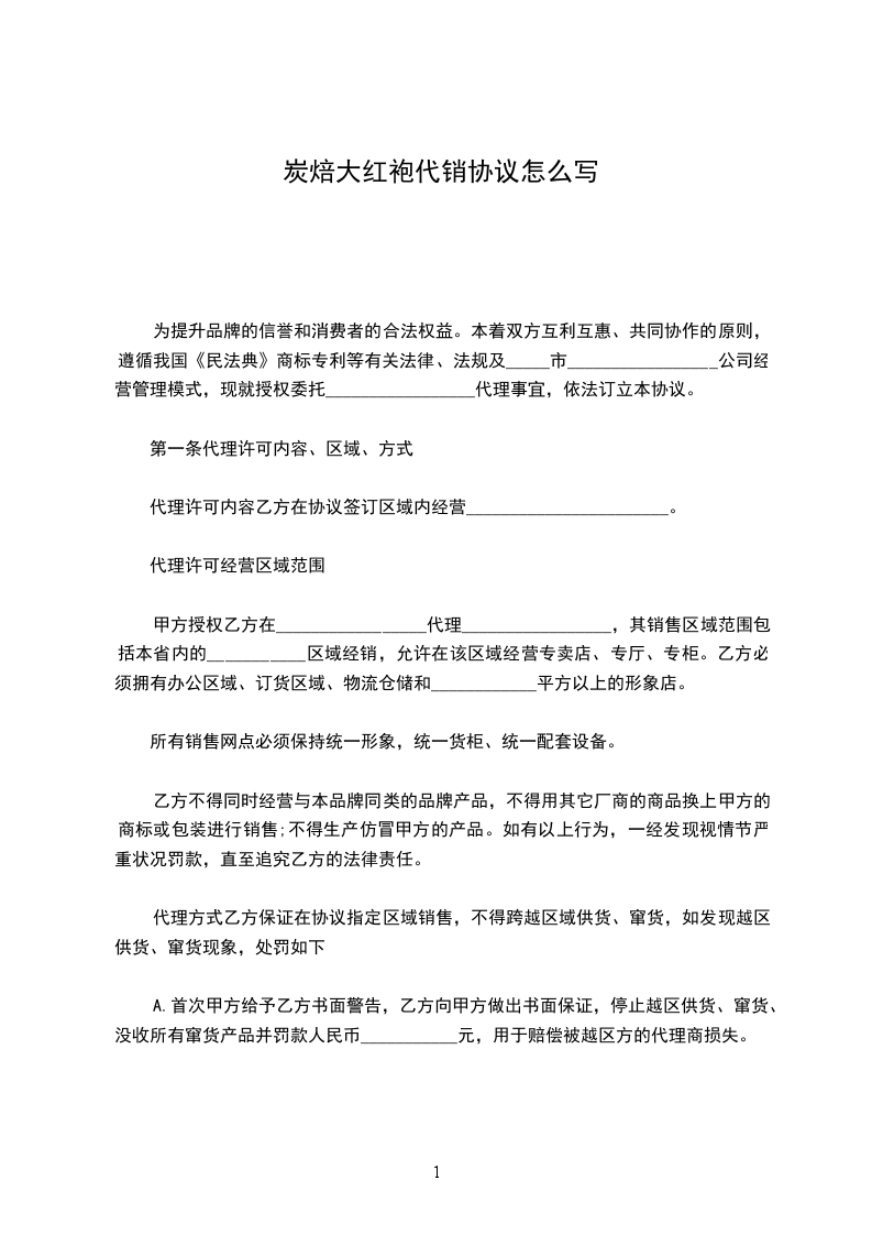 2、乙方年销售任务为________万元,每月最低________万元。乙方在销售期间应该按月、季度的销售计划进货。如连续三个月未完成销售任务的______%或全年未完成销售任务的______%,甲方有权取消乙方的经销权。无论是乙方放弃还是甲方取缔其经销权,乙方应该无条件保证甲方产品的可持续稳定发展以及配合甲方做好渠道、市场的交接工作。