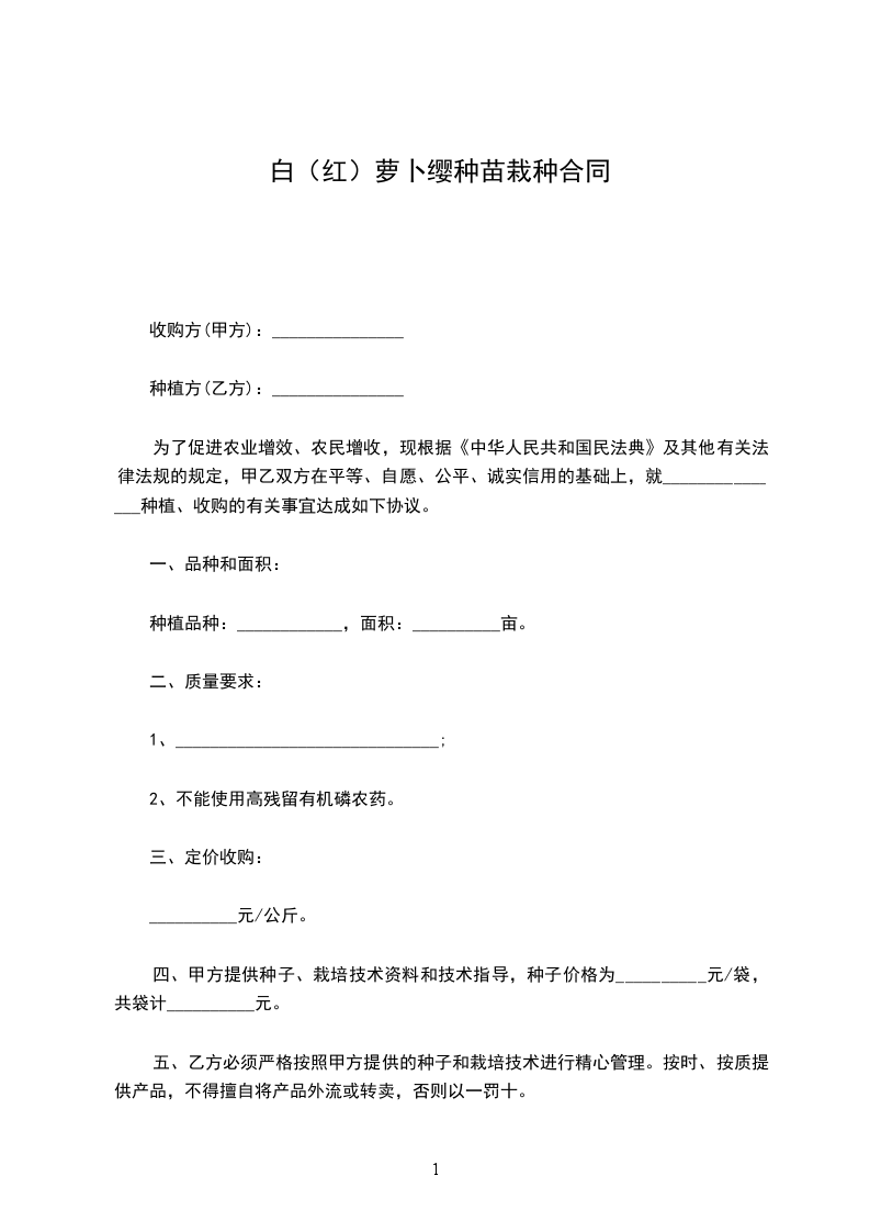 三、乙方责任:乙方在种植前向甲方补助青苗费______________元/亩。