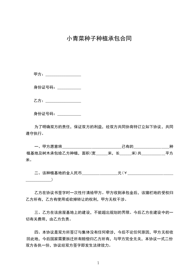 一、甲方愿意将______________________________己有的__________________种植基地及树木承包给乙方种植,面积(宽______米,长______米)共____________平方米。