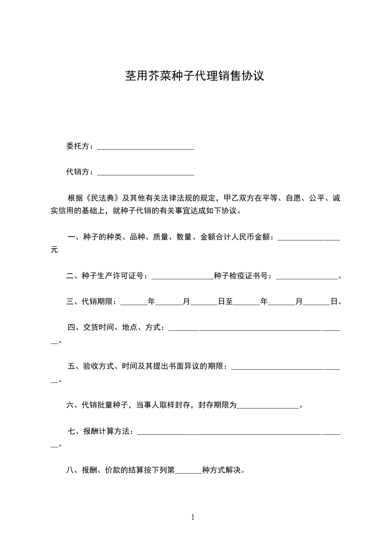 二、销售量:总代理与一级经销商合计本年度销售:__________________种子不得少于____________斤,即总代理销售量为总量____________斤减去一级经销商销量(____________斤已签订合同),应为____________斤以上。
