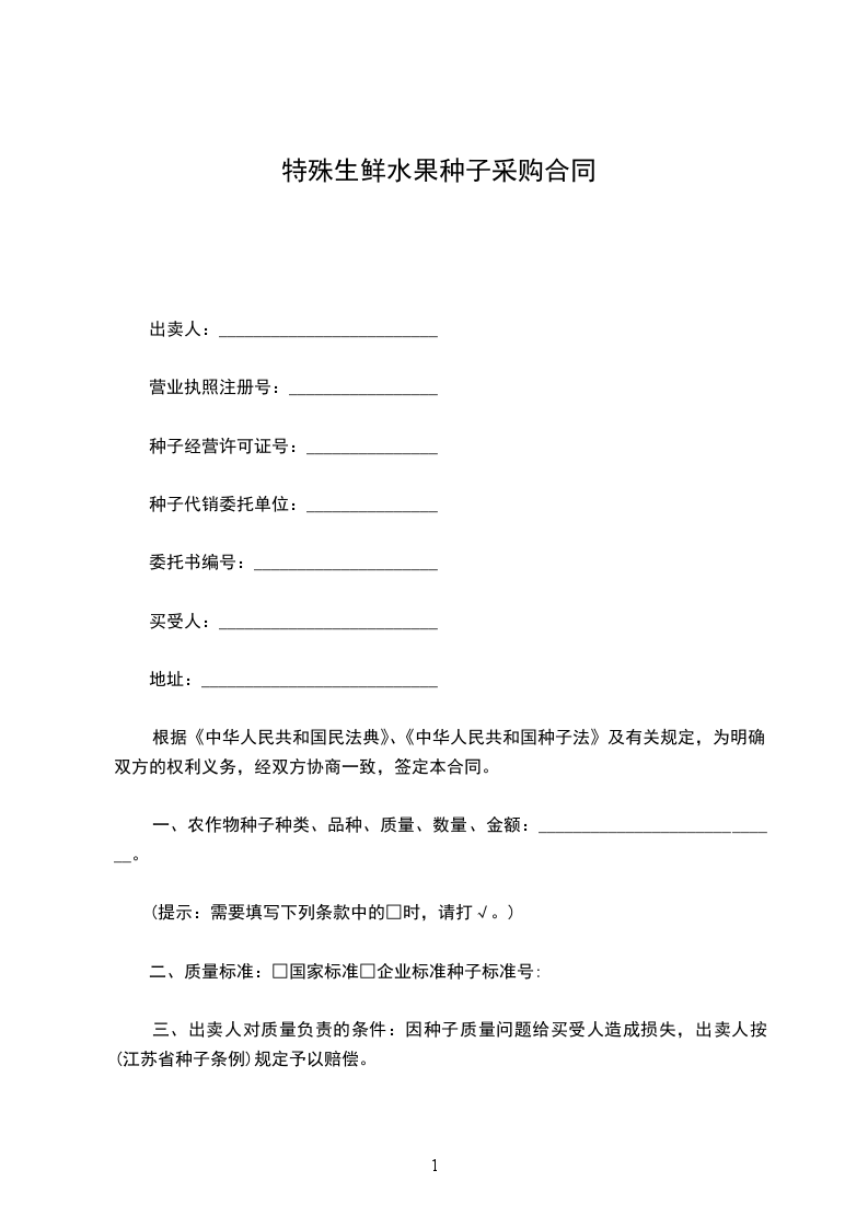 四、甲方提供种子、栽培技术资料和技术指导,种子价格为__________元/袋,共袋计__________元。