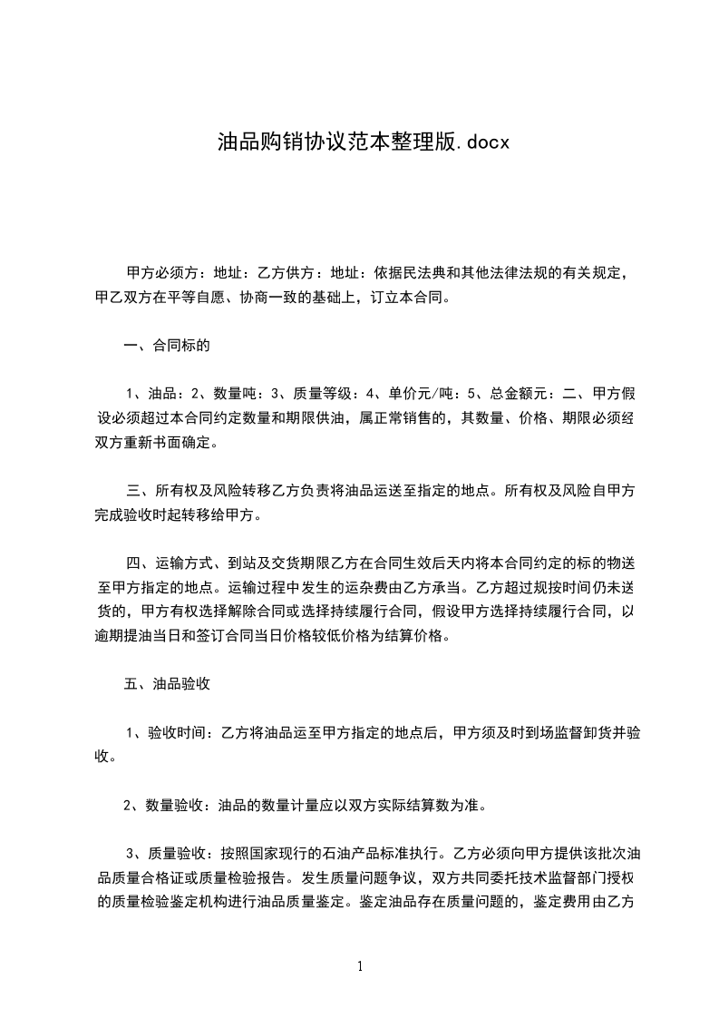 1、验收时间:乙方将油品运至甲方指定的地点后,甲方须及时到场监督卸货并验收。