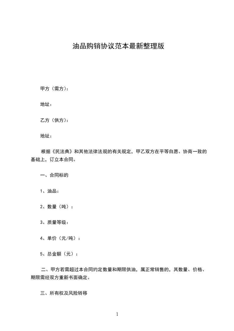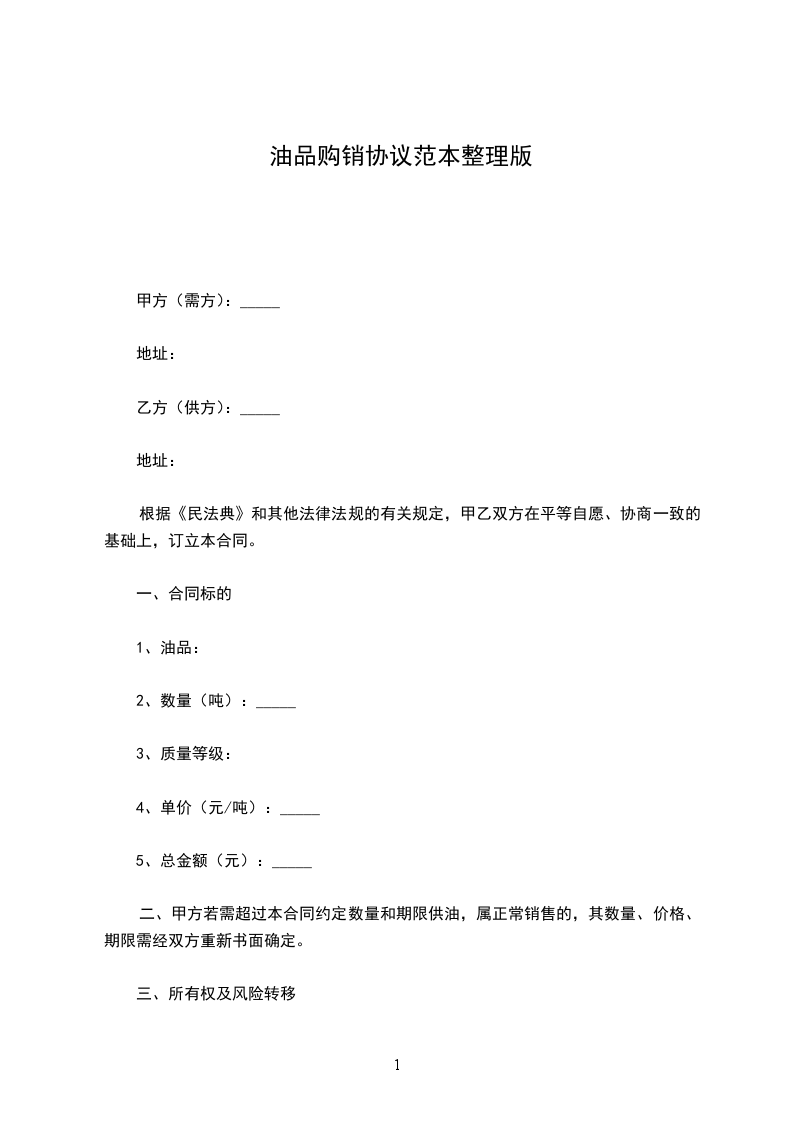 乙方负责将油品运送至指定的地点。所有权及风险自甲方完成验收时起转移给甲方。