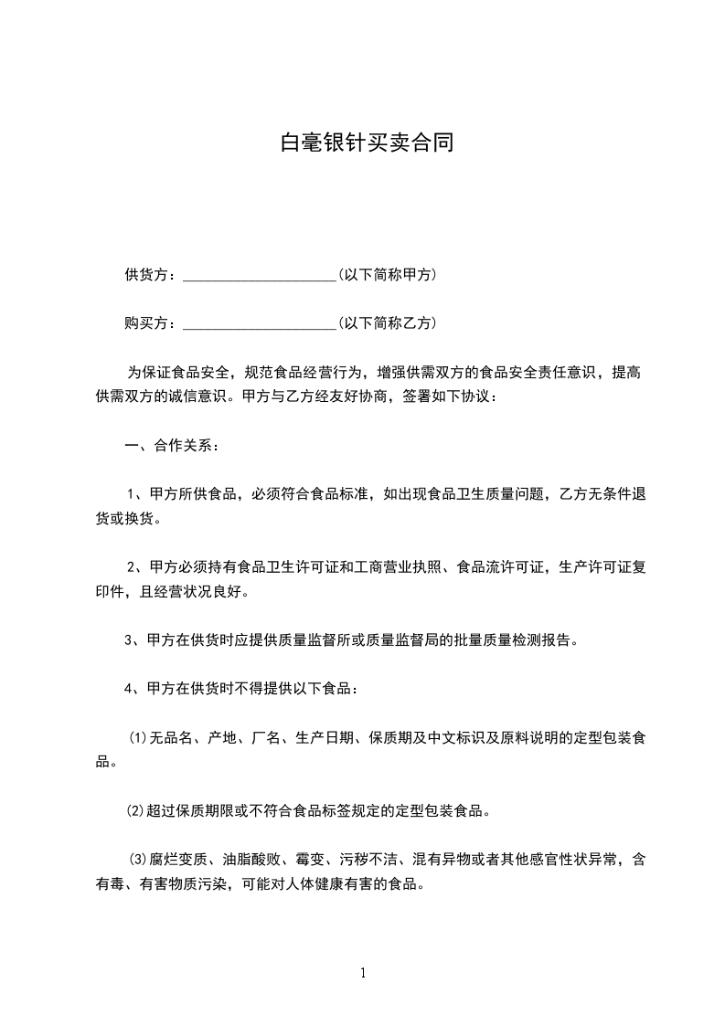 3、产品的保质期为_________________________。在保质期内,产品出现非人为损害的质量问题,甲方无条件退货或换货。
