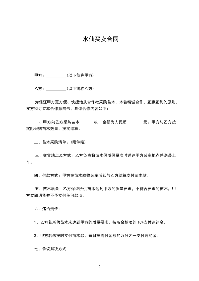 牛栏坑水仙买卖合同