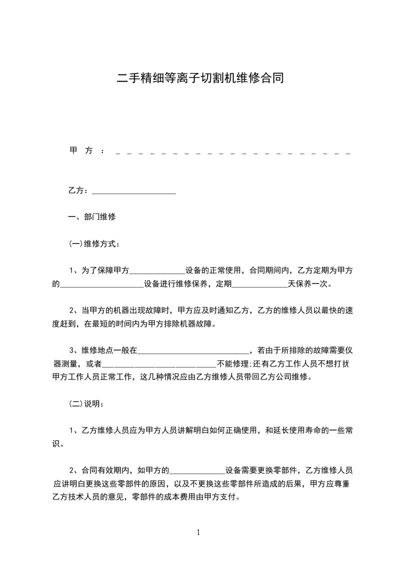 自设备经双方验收合格之日起,乙方应按有关规定进行保修服务,保修服务期限为______年,保修期内,乙方必须在接到甲方要求维修通知后______天派人到设备现场维修,设备维修所用的材料成本易损件由甲方承担。