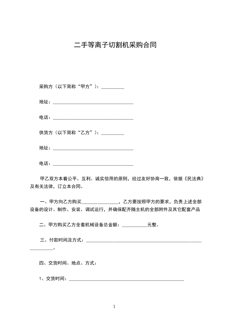 二、甲方购买乙方全套机械设备总金额:___________元整。