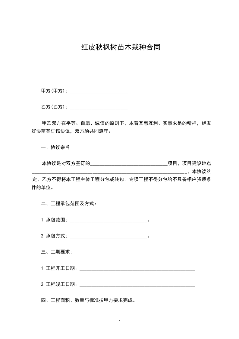 四、乙方应根据国家相关技术要求,及自身经验和苗木生长情况进行栽植,栽植完后做好养护工作。