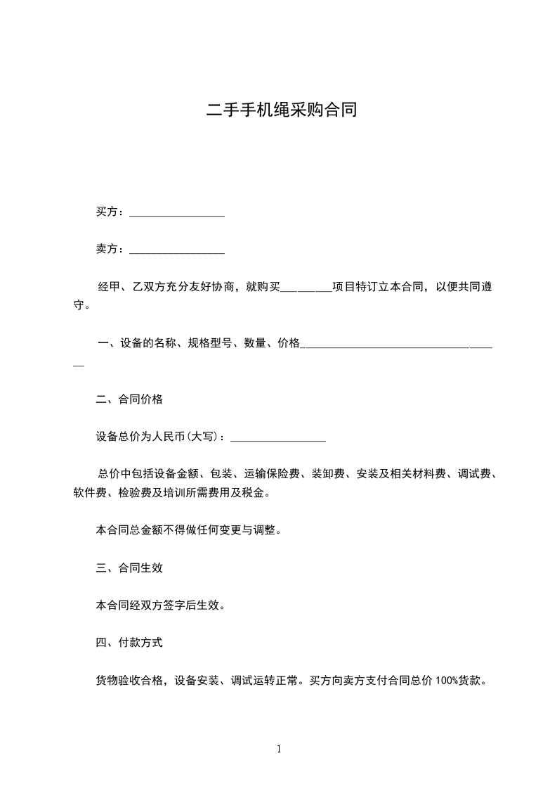 二手刺绳机采购合同