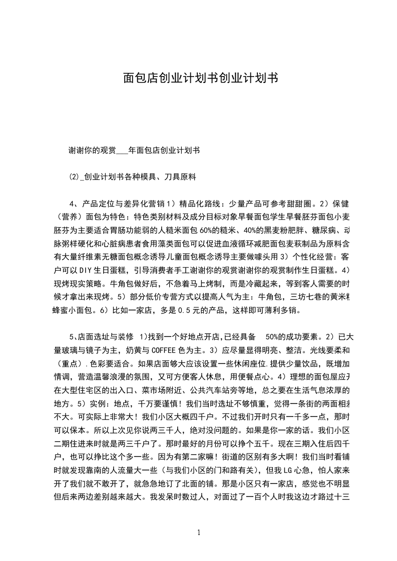 最后,机会永远是留给准备最好的人。面包店创业计划书