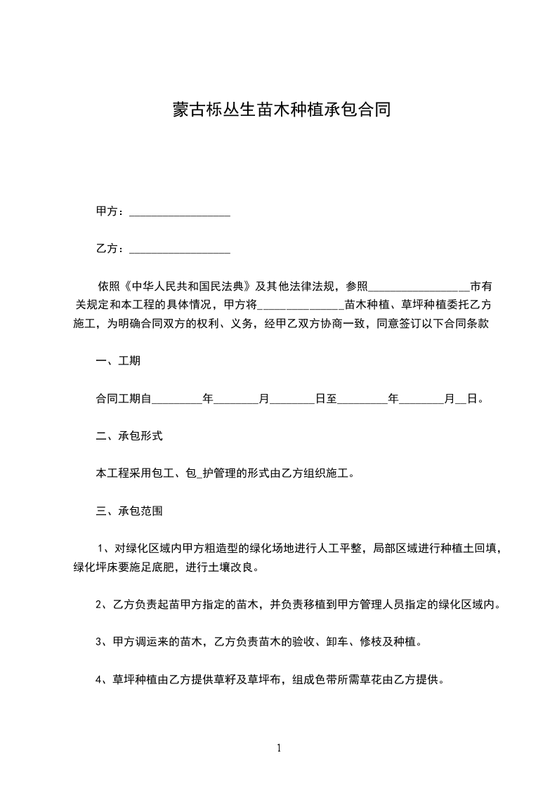 蒙古栎苗木栽种合同