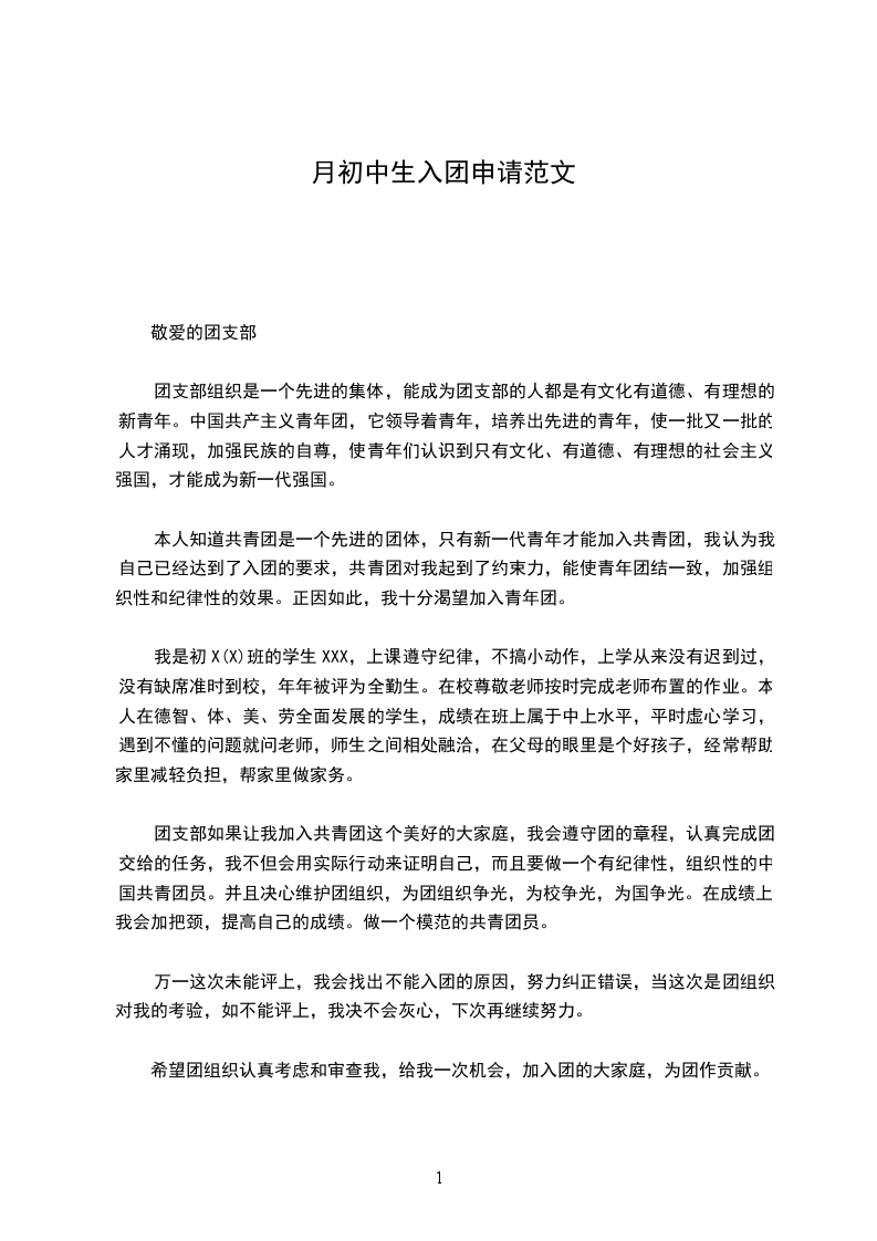 本人知道共青团是一个先进的团体,只有新一代青年才能加入共青团,我认为我自己已经达到了入团的要求,共青团对我起到了约束力,能使青年团结一致,加强组织性和纪律性的效果。正因如此,我十分渴望加入青年团。