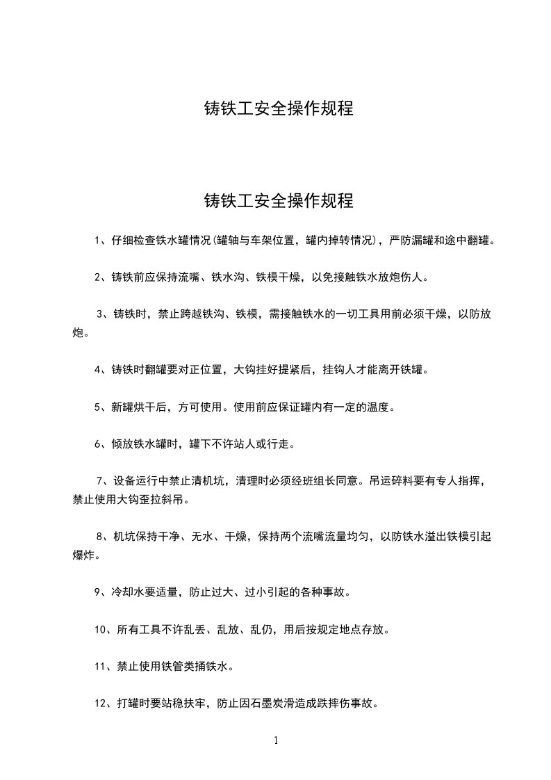 九、在压铸时,不准有人站在模具人分型面的两侧面,以免发生飞料伤人。