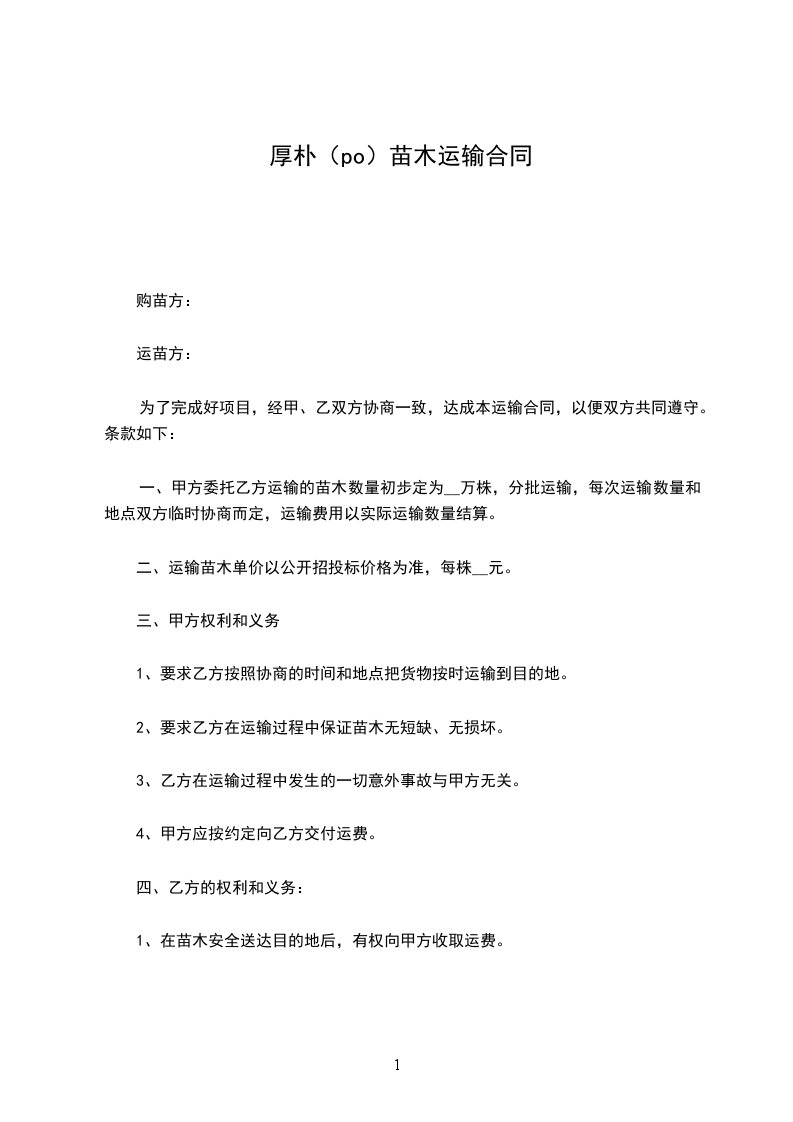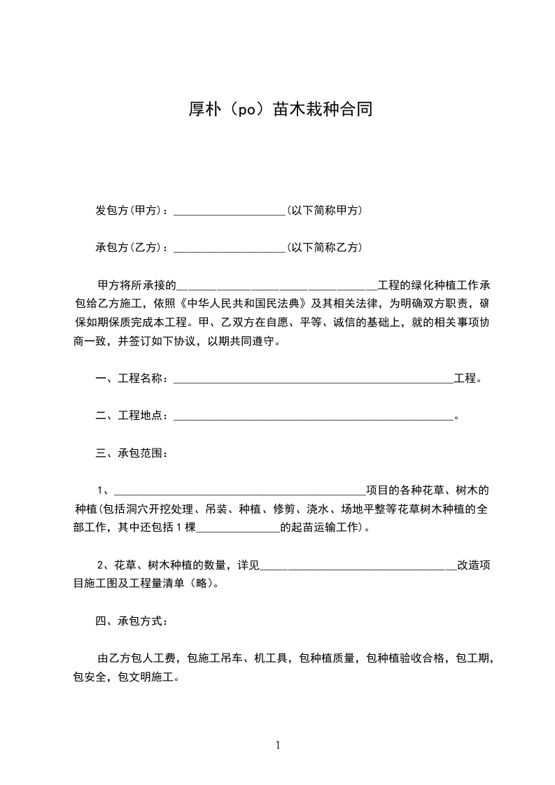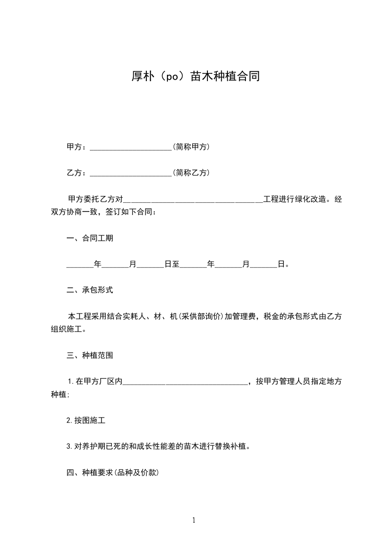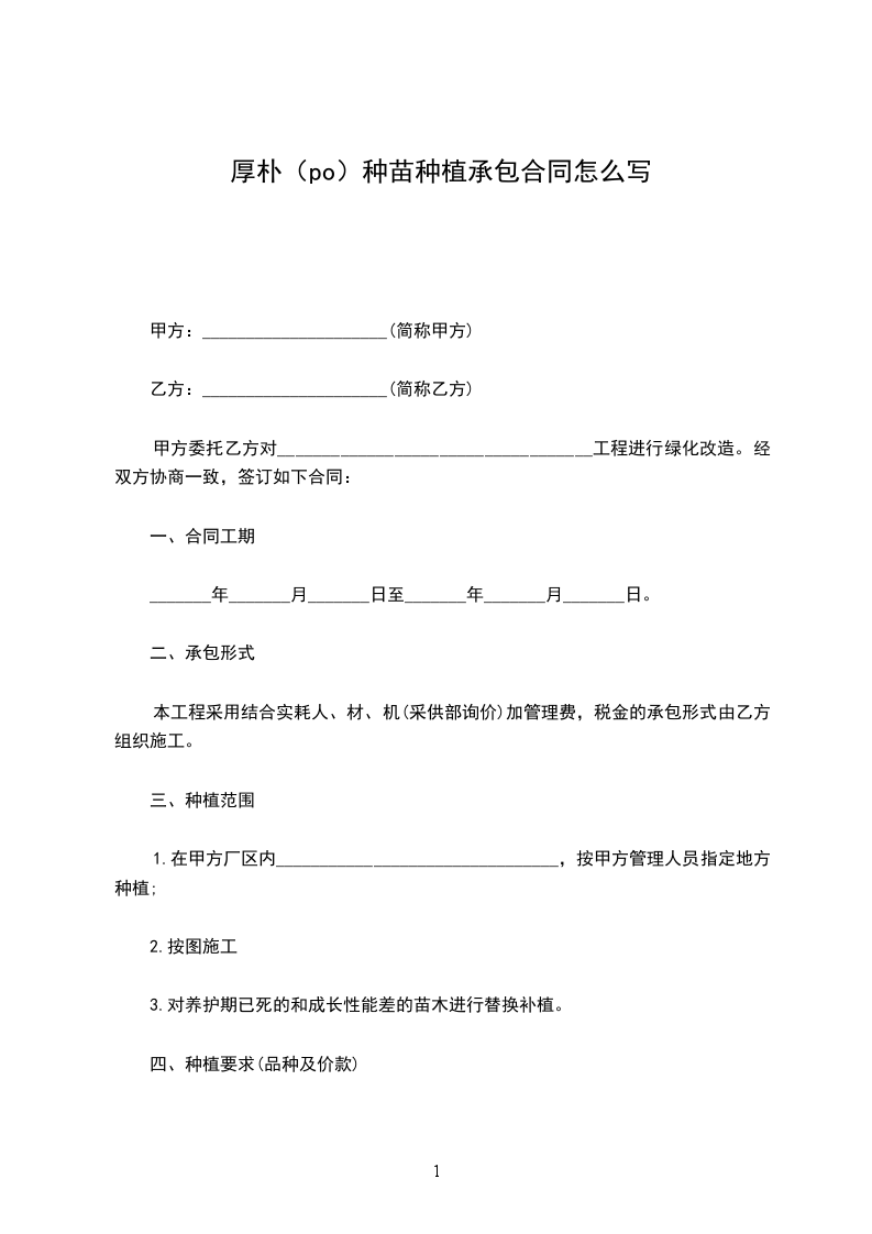 厚朴(po)苗木栽种合同