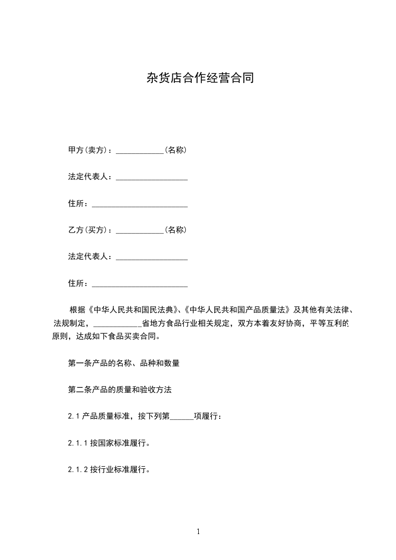 根据《中华人民共和国民法典》、《中华人民共和国产品质量法》及其他有关法律、法规制定,____________省地方食品行业相关规定,双方本着友好协商,平等互利的原则,达成如下食品买卖合同。